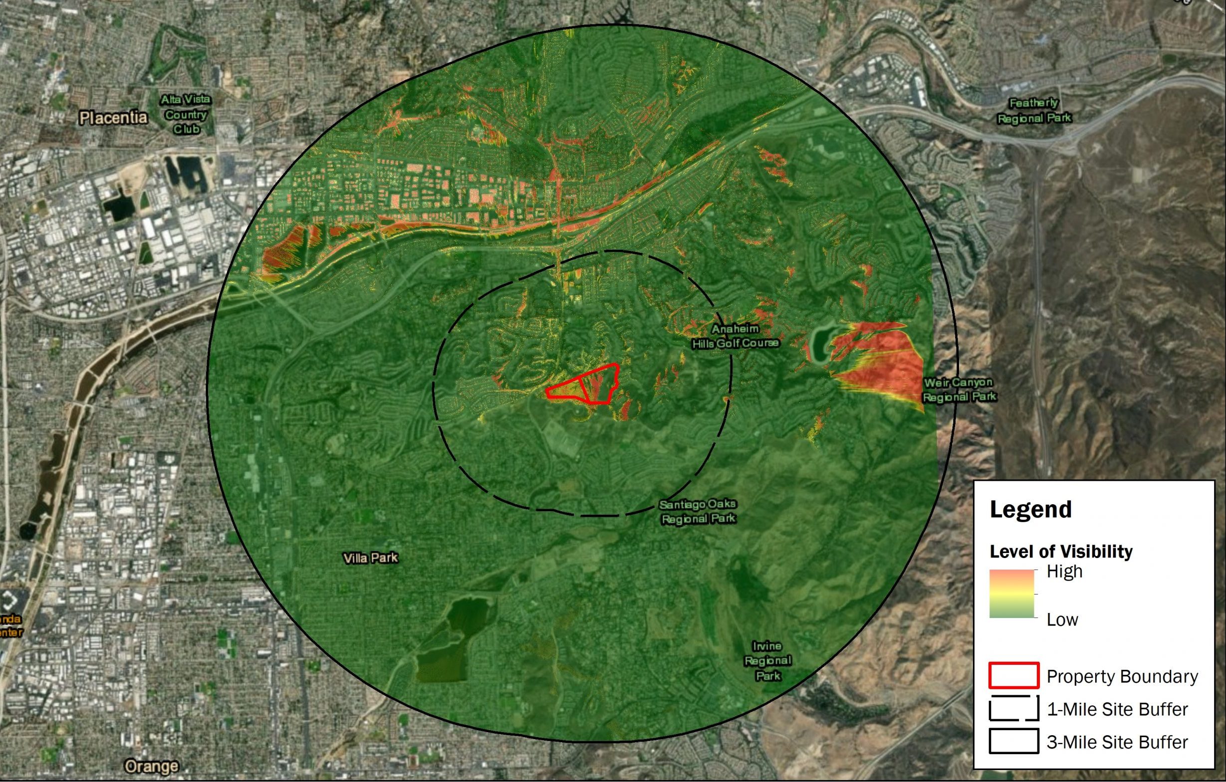 Great Ecology led site research on the potential land use and environmental impacts of a proposed 30-acre solar facility development in Anaheim, CA in support of an Initial Study for California Environmental Quality Act (CEQA). To inform site design, permitting plans, and improve community outreach efforts, Great Ecology conducted a visual impact study to determine the level of viewshed impact from the solar array. Utilizing GIS analysis and 3D modeling software, we created scale accurate renderings to determine ideal locations for plant installations to reduce viewshed impacts and serve as outreach materials to inform the surrounding communities.