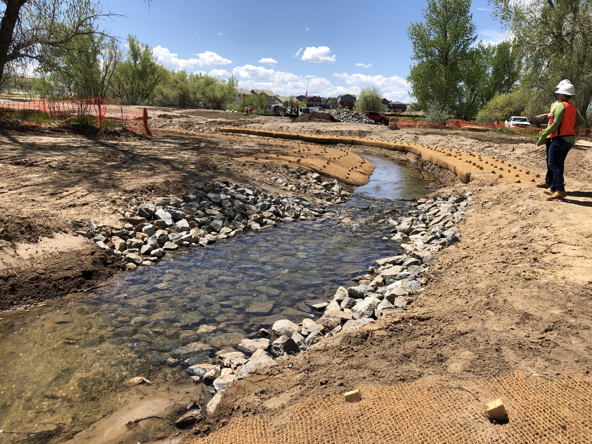 Great Ecology provided ecological design support to the Jacobs Engineering project team for the redesign of a reach of First Creek into a six acre nature play themed park, the first of its kind in Denver. Great Ecology developed habitat restoration designs that function within the context of the landscape and create natural spaces that engage park users in a way that enlivens the senses and encourages out-of-the-box play. This included a native planting plan that is conducive to exploration and imagination while still being resilient and low maintenance considering over half of the park sits within the floodplain. Great Ecology also provided guidance on the creation and placement of nature play features throughout the park, from strategically placed rocks for hopping to shallow streams for wading. Nature play features help bring children and adults closer to nature in a fun and sustainable way.