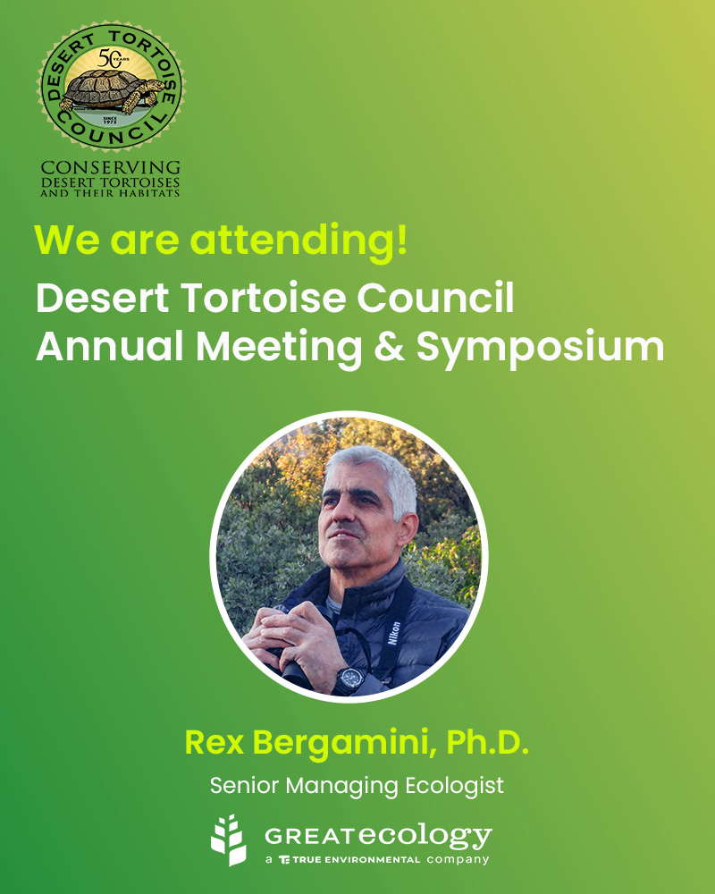 Next week, our Senior Managing Ecologist Dr. Rex Bergamini will be attending the Desert Tortoise Council’s 50th Annual Meeting & Symposium in Las Vegas, February 25-28th.