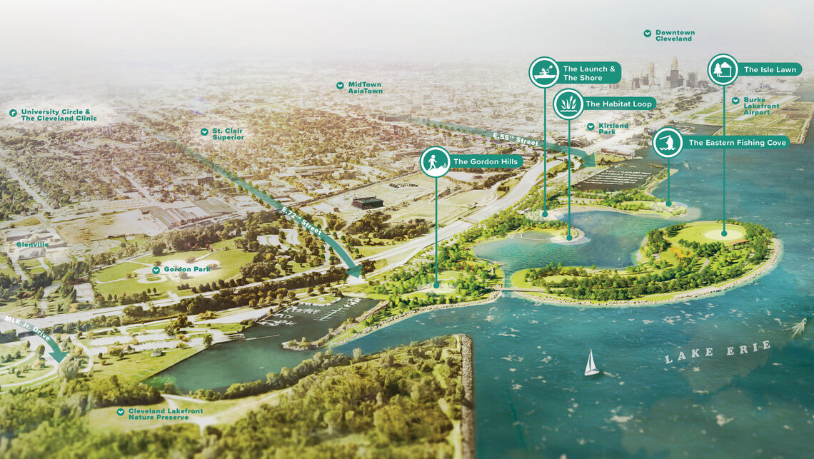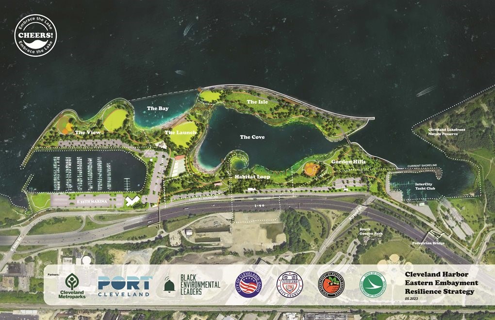 The Cleveland Harbor Eastern Embayment Resilience Study (CHEERS) sought to transform Cleveland’s Lake Erie shoreline by leveraging nature-based solutions to improve the environment, reconnect communities to the waterfront, enhance public health and wellness, bolster the economy, and improve Lake Erie’s natural resources. A year-long feasibility study, completed in 2022, evaluated the feasibility of several proposed alternatives for the re-development and ecological enhancement of a former industrial waterfront space.