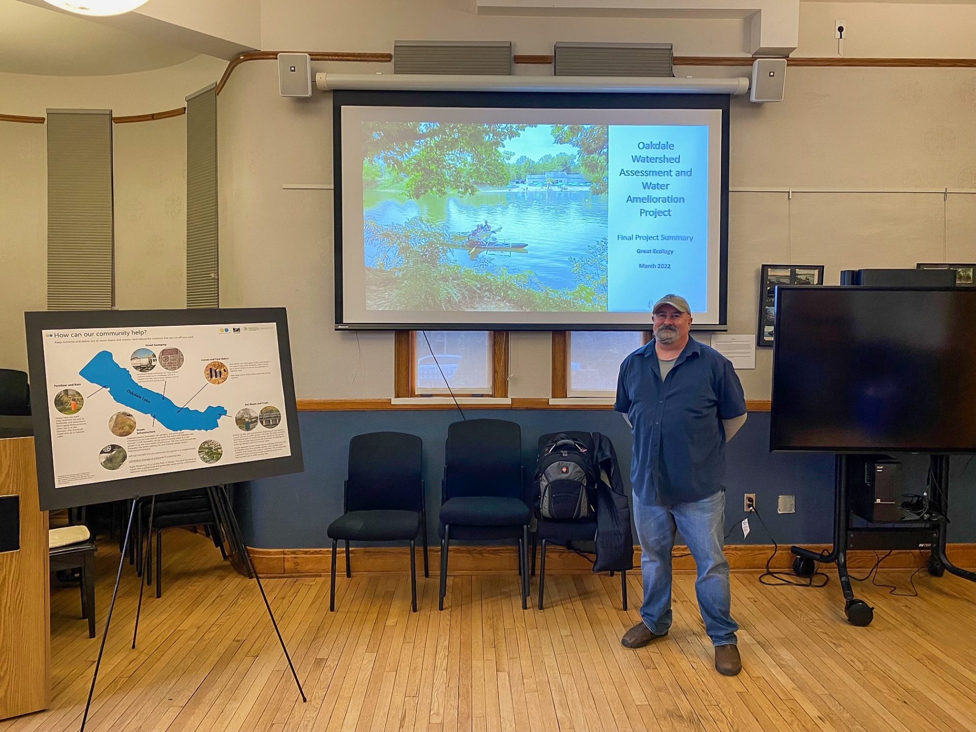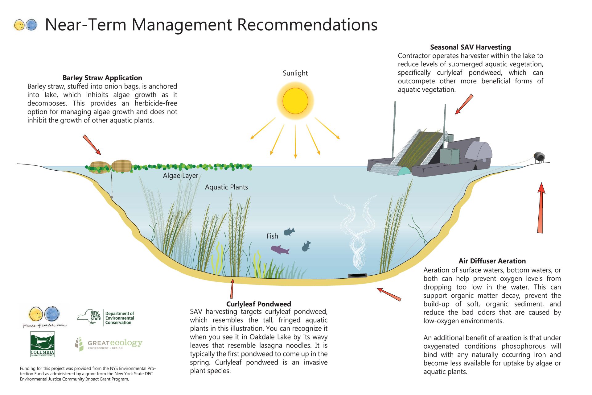 As part of this project, Great Ecology has had the fantastic opportunity to connect with the Hudson community through educational sessions, town halls, and interactive field trips for local schools. This includes developing informational signage regarding lake conditions and management actions. Additionally, we have helped the Friends of Oakdale Lake coordinate with local public and private stakeholders to improve and maintain water quality, and identify future project opportunities for projects that may be eligible for public and private grant support.