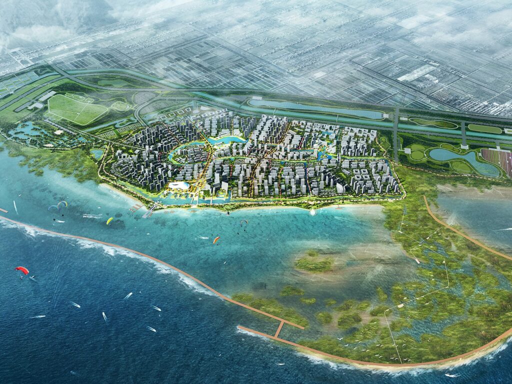 Great Ecology joined the PLAT Studios master planning team for conceptual and schematic design of the Qidong “Key East” Development in Nantong, Jiangsu Province in China, 87 KM from Shanghai and adjacent to the Yuantoujiao Tourism Resort. The project site is a large oceanfront wetland and cattle pasture area that will be the site of a future large city with a heavy emphasis on ecological planning and green infrastructure. Components of the master plan will include a “wetland wellness center;” several ecoparks featuring wetland habitat walking trails; a sponge city strategy; a seagrass wetland park; and numerous other ecological amenities woven into the city. Great Ecology provided ecological consultation for habitat restoration, green space design, and sustainable green infrastructure features to PLAT Studios before the project was put on hold due to the COVID-19 pandemic.